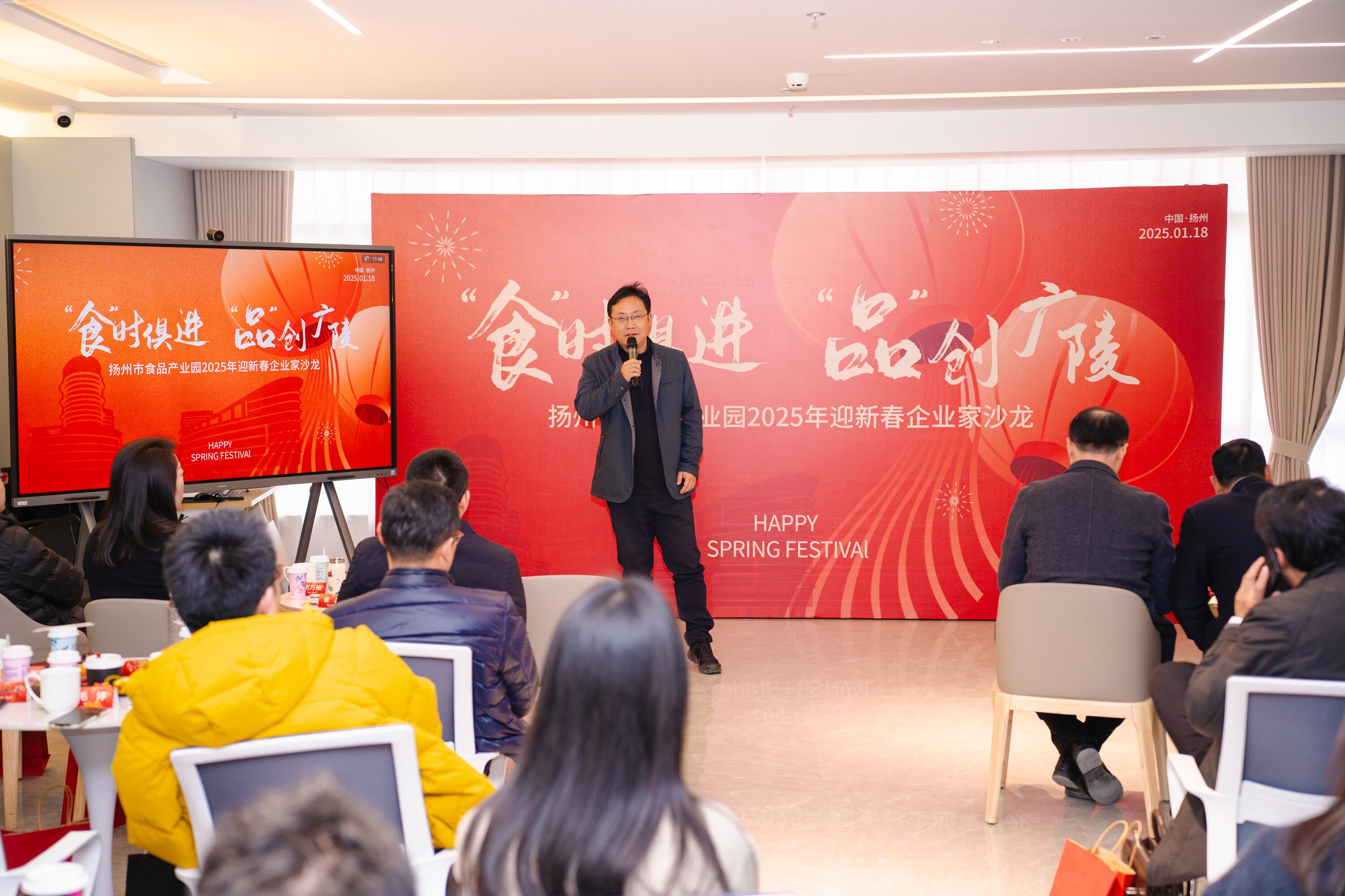 近日,“‘食’時俱進 ‘品’創廣陵”新春企業家沙龍活動在“廣悅居·國際人才公寓”舉辦。廣合集團總經理王辰南出席活動并講話。區委統戰部副部長、工商聯黨組書記李剛,食品產業園黨委書記、管理辦主任崔淼參加活動。湯汪街道黨工委副書記司萬柏,揚州大學食品科學與工程學院科研辦主任、教授吳滿剛等領導和企業家出席活動。